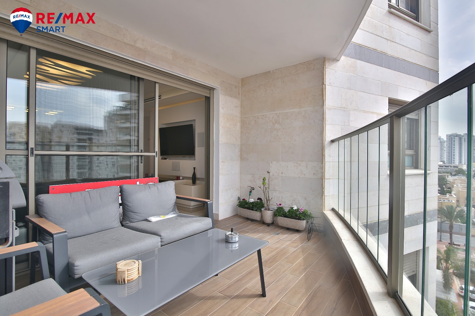 מרפסת 12 מטר מערבית עם נוף ים משגע של 180 מעלות.