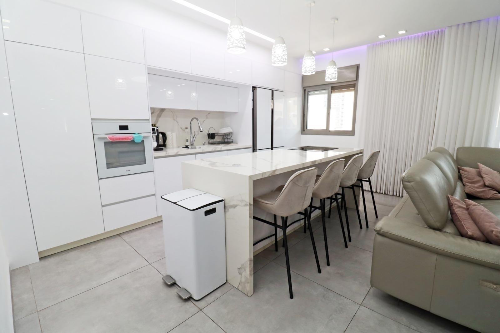 הדירה עברה שדרוג מלא וכוללת מטבח קו אפס מנגר פרטי עם אי גדול, הכולל נקודות חשמל וכיריים חשמליים. הסלון והמטבח מחוברים במרחב אופן ספייס מרווח. חדרי הרחצה משודרגים ומעוצבים ברמה גבוהה.
